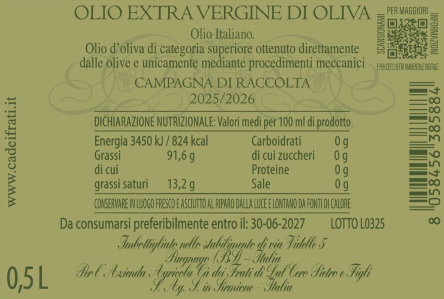 Per preservarne la massima qualità, utilizziamo bottiglie completamente smaltate per schermarlo dalla luce e ridurre i perossidi. L’attenzione dedicata a ogni fase del processo a filiera completamente inertizzata ci permettono di offrire un olio di eccellente qualità, in cui ogni goccia racconta la nostra storia e dedizione alla tradizione olivicola.