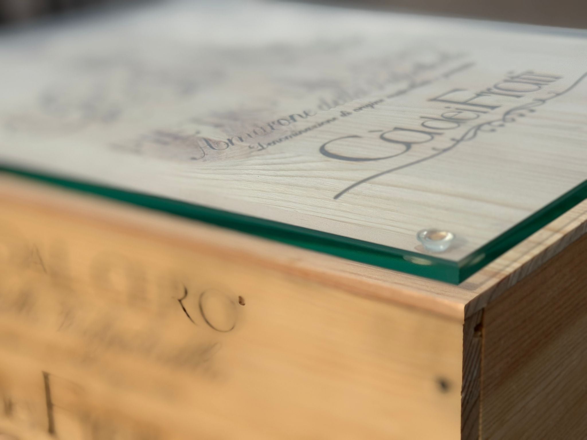 Elegante tavolino da servizio realizzato a partire da una cassa in legno personalizzata Cà dei Frati. Questo gueridon unisce artigianalità, design e passione per il vino, diventando un elemento perfetto per degustazioni, eventi o come complemento d’arredo per gli amanti del vino.